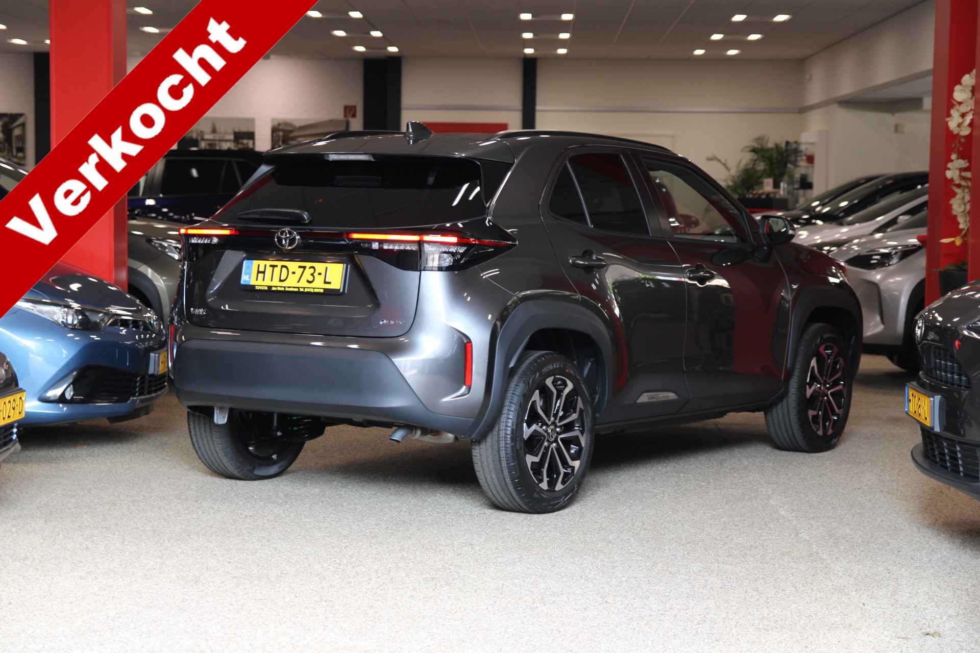 Per direct leverbaar: Yaris Cross 130 Hybrid Dynamic met winterpack ( stoelverwarming, stuurverwarming en ruitenwisserverwarming) In de populaire kleur Ash Grey Metallic.